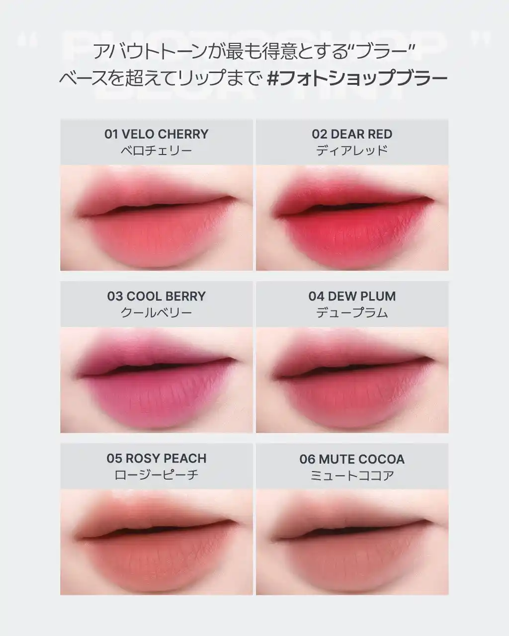 ベースメイクを中心に「ブラー表現」のアイデンティティを築いてきたアバウトトーンから、新たにリップ商品「ブラーフィットティントミニ」を発売いたします。 |