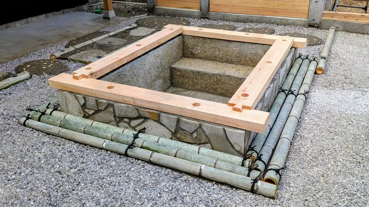 | 本庭園は、サウナ後の外気浴スペースとして設計されており、筧(かけい)、蹲(つくばい)、灯篭、延段、飛び石など、日本庭園の伝統的な要素を取り入れた空間となっています。 | |||||||||
