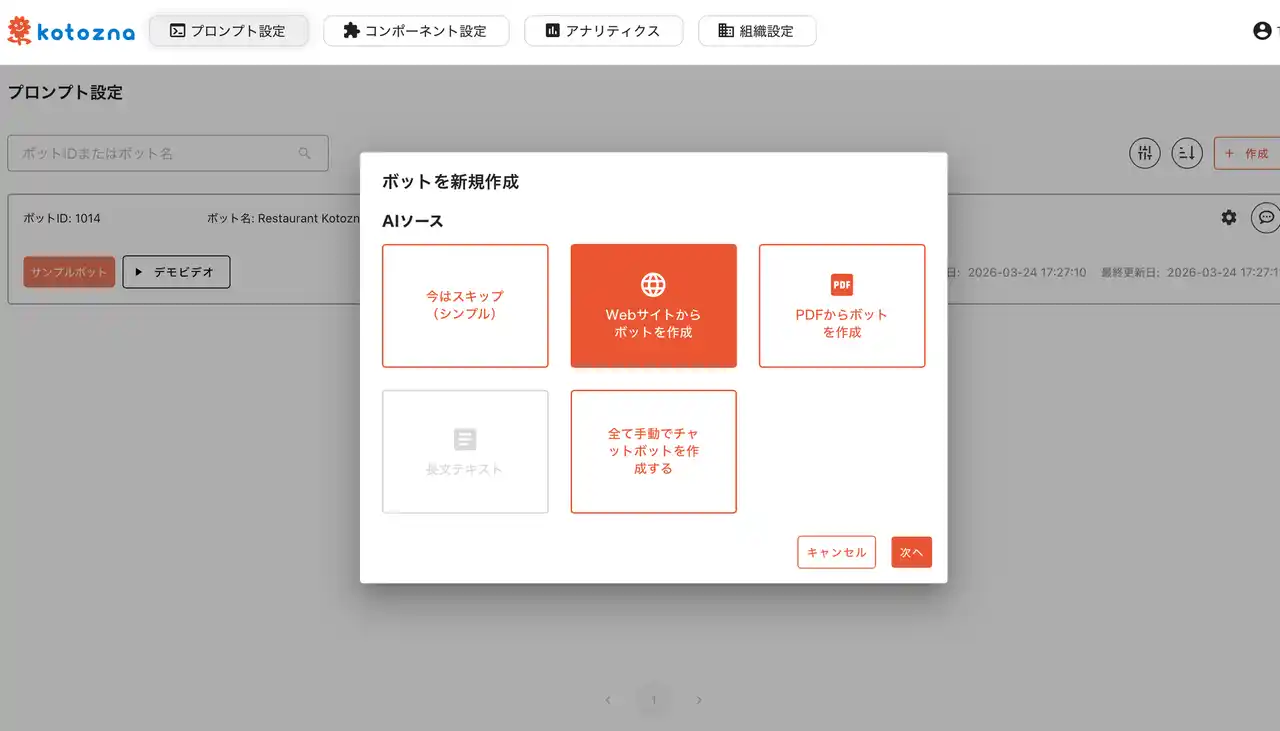 | Kotozna株式会社(本社:東京都港区、代表取締役CEO:後藤玄利)は、生成AIを活用した多言語コミュニケーションプラットフォームを提供するBtoB SaaS企業として、「Kotozna TPG 2.0」において新たな自動データ処理機能を2026年3月24日(火)に発表しました。これにより、ユーザーはPDFドキュメントやWebサイトURLを入力するだけで、ワンクリックで高精度なAIチャットボットを簡単に作成できるようになります。 | |||||||