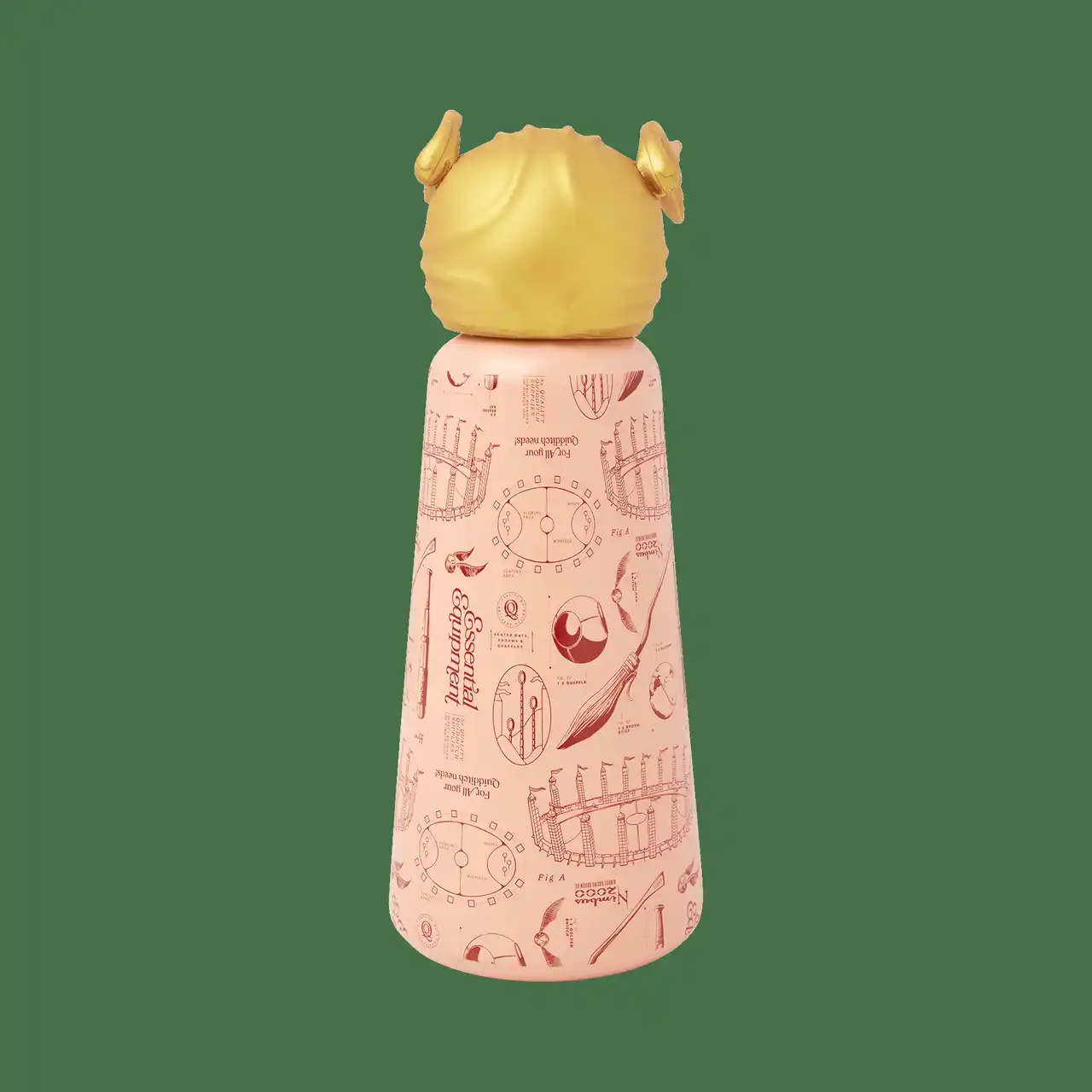 観戦の日も、日常の外出も、いつでもクィディッチの高揚感を感じられるタンブラー。クィディッチのピッチ図や用具のディテール、戦術図を思わせるグラフィックをボトル全面にプリント、蓋の上には立体的な金のスニッチがあしらわれています。羽のディテールまで表現された造形と、深みのあるゴールドカラーが、競技の躍動感を感じるアイテムです。 |