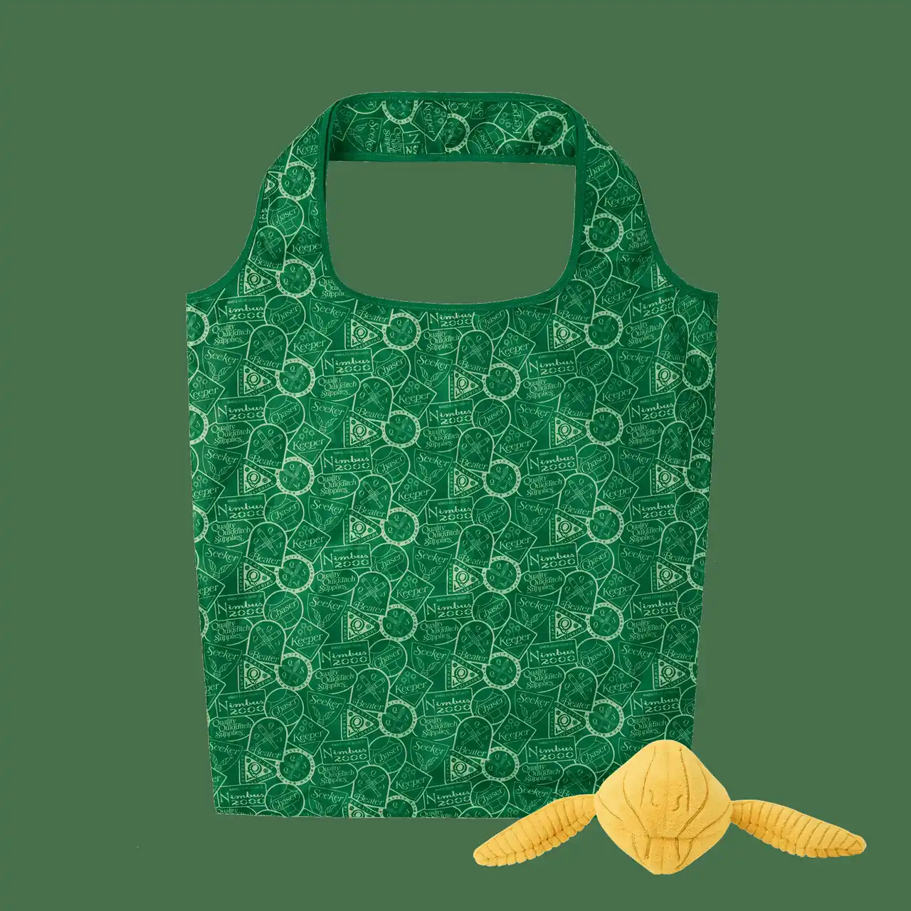金のスニッチ型ぬいぐるみ&折りたたみバッグです。 |