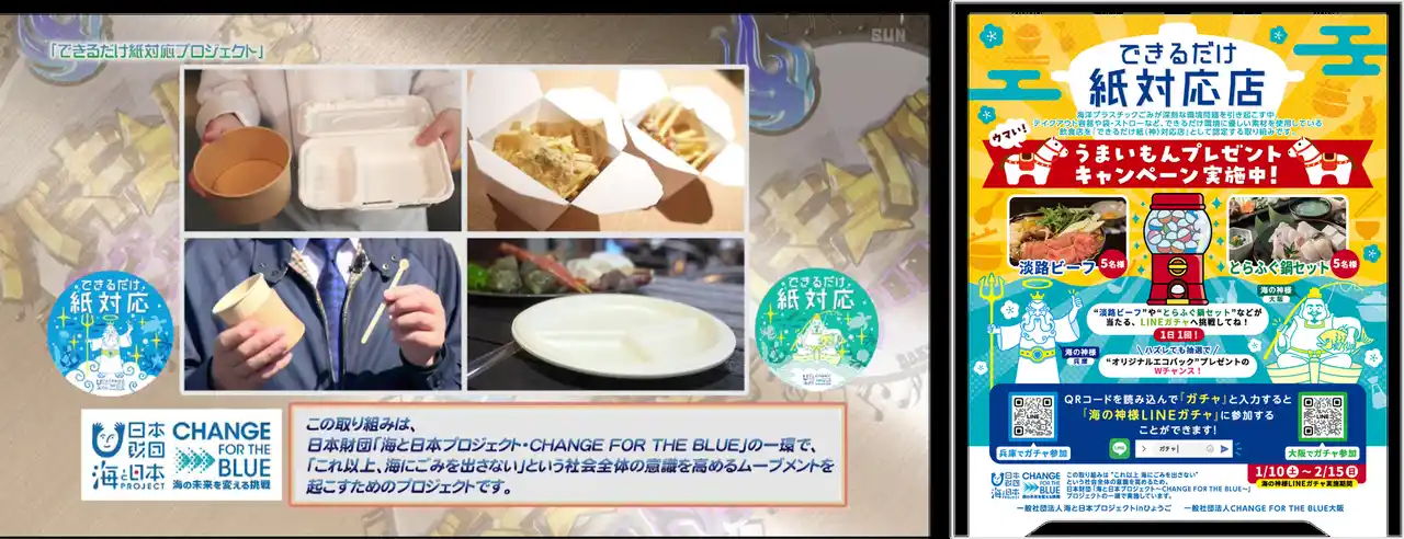 一般社団法人 CHANGE FOR THE BLUE 大阪は、2025年4月から年間を通して、海洋プラスチックごみが深刻な環境問題を引き越こす中、テイクアウト容器や袋・ストローなど、 |