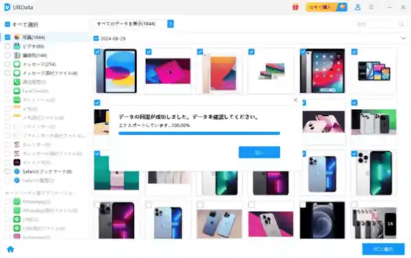 iPhone/iPadいずれも対応しており、写真以外にも動画やメール、連絡先などを高確率で復元可能です。