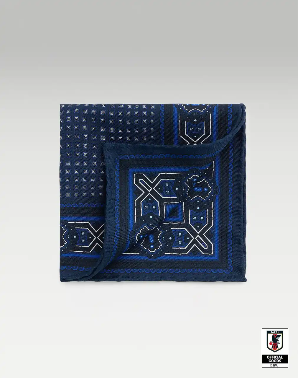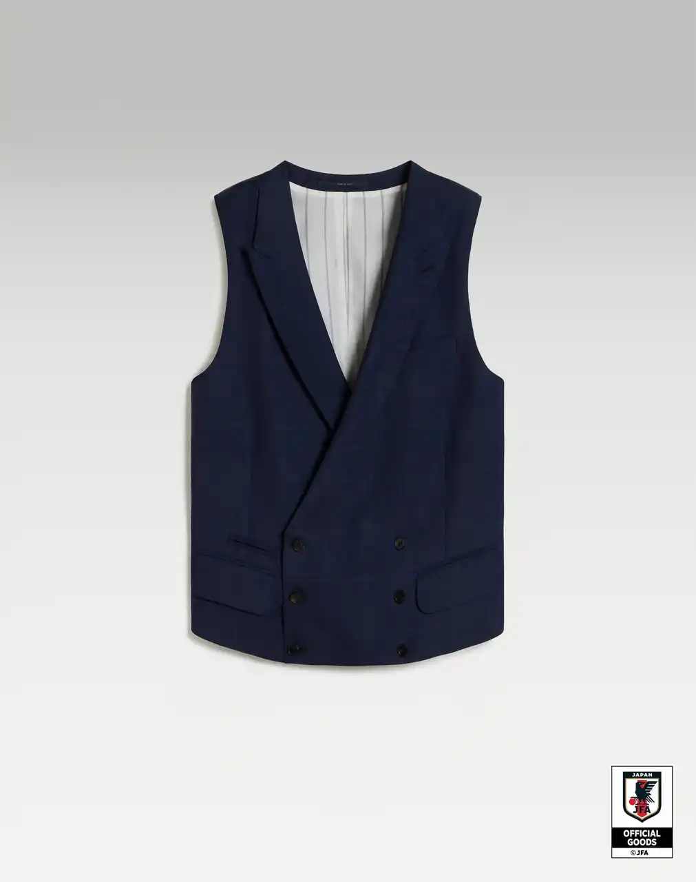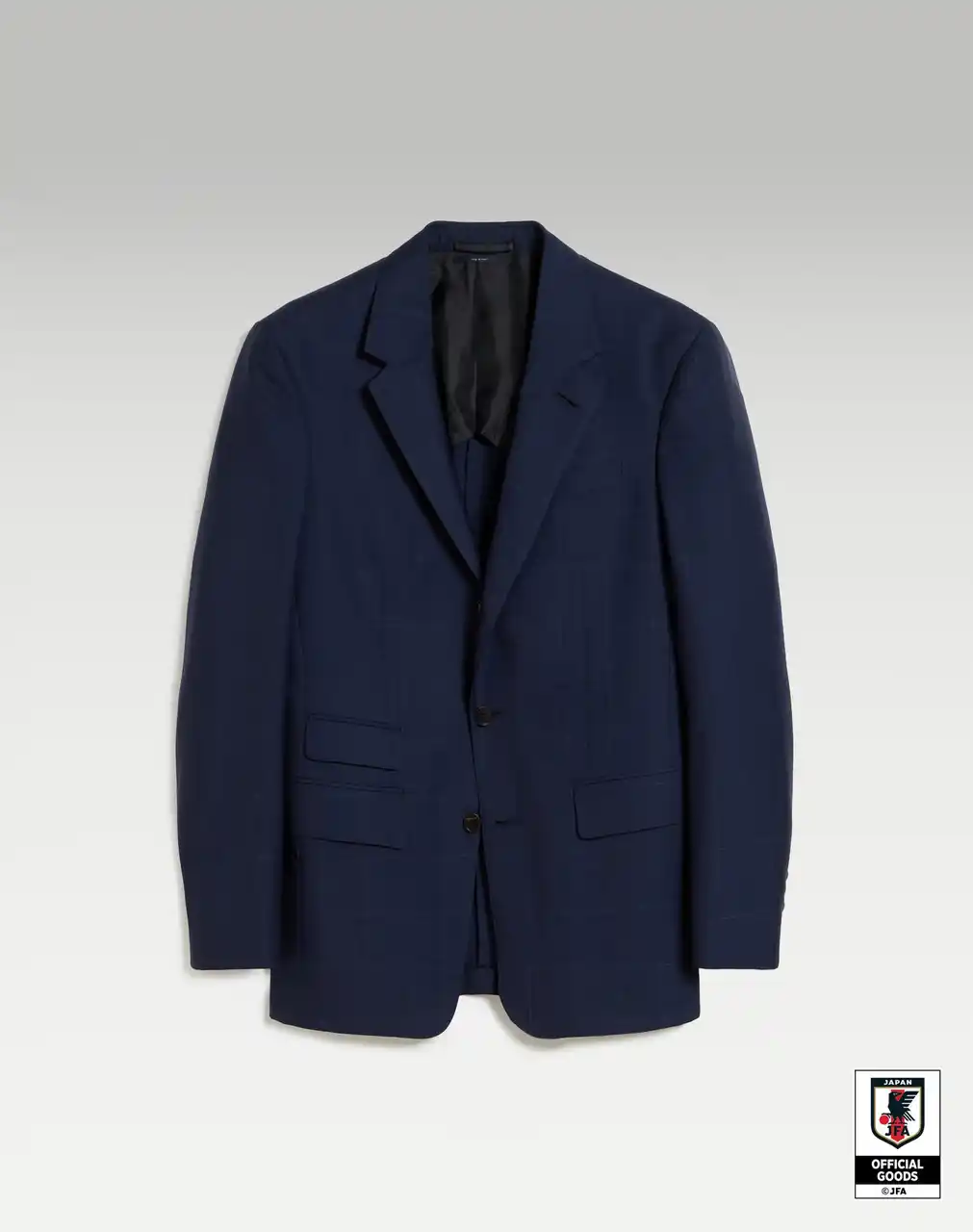 SAMURAI BLUE COLLECTION 2026の中核をなすのは、スーパー130のウールとカシミヤを用いたBourdon(ボードン)の3ピーススーツです。シングルブレストジャケット、ダブルブレストウエストコート、フラットフロントトラウザーズで構成され、英国のミルで開発された特別な生地を採用。この3ピーススーツは2026年に向けたチームのスタイルの基盤となるものです。スーツにはギザコットンのスプレッドカラーシャツを合わせ、唯一無二のアンサンブルを完成させています。 |