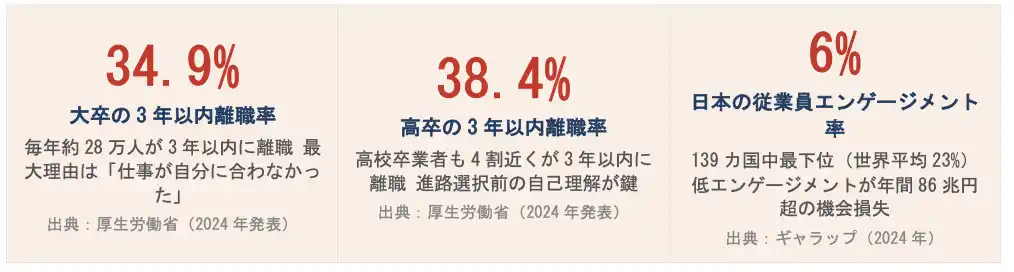 本プロジェクトは、ミスマッチ離職を5~10%削減できれば毎年1.4~2.8万人の早期離職を防げると試算しており、若者一人ひとりへの直接アプローチで社会課題の解決に挑みます。 |
