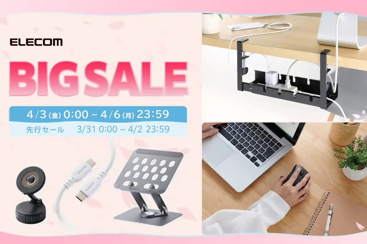 エレコム株式会社(本社:大阪市中央区、取締役社長執行役員:石見 浩一)は、Amazonで2026年4月3日(金)0:00から4月6日(月)23:59にかけて開催される「Amazon 新生活セールFinal」において、エレコムの人気製品を特別価格で販売いたします。 |