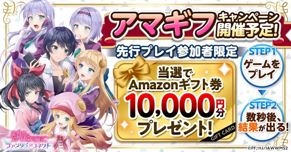 | 先行プレイ期間中にゲームをプレイすると、その場で抽選結果が分かるキャンペーンに参加可能となり、当選された方には Amazonギフト券10,000円分をプレゼント予定です。 | |||