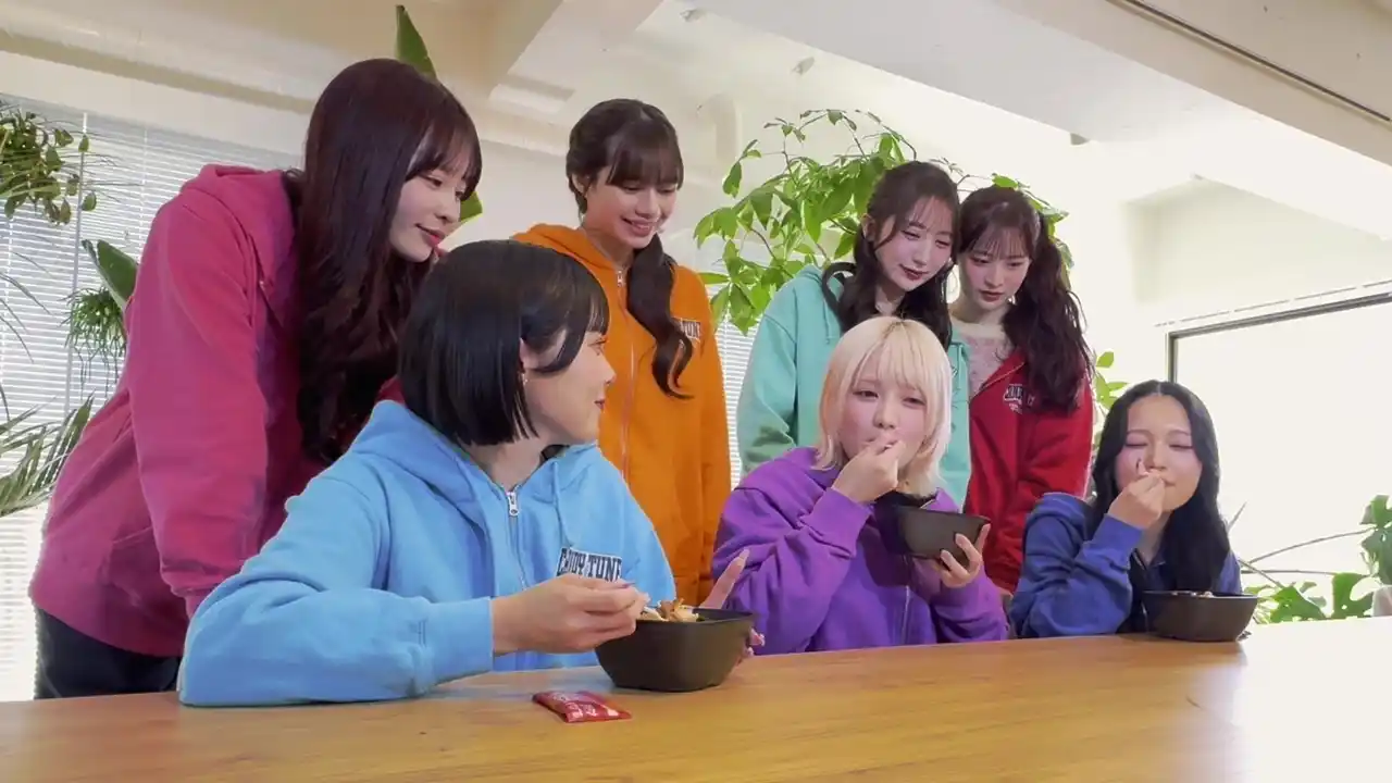 TUNEです!本日はよろしくお願いします!」という活気あふれる挨拶からスタートしました。注目のダンスシーンでは、手に持った『焼肉ビビンバ』から漂う香りに、メンバーから「何回嗅いでもいい匂い!」「早く食べたい!」と思わず本音がこぼれる場面も。実食の際には、代表メンバーがその味を堪能。「(タレを)かける量によって、辛さを調整できるのが良い」「めちゃめちゃ旨辛です!」と、その本格的な味わいを絶賛していました。メンバー同士で息を合わせるダンスシーンも多く、終始笑い声が響く温かい雰囲気のなか、撮影は無事に終了しました。 |