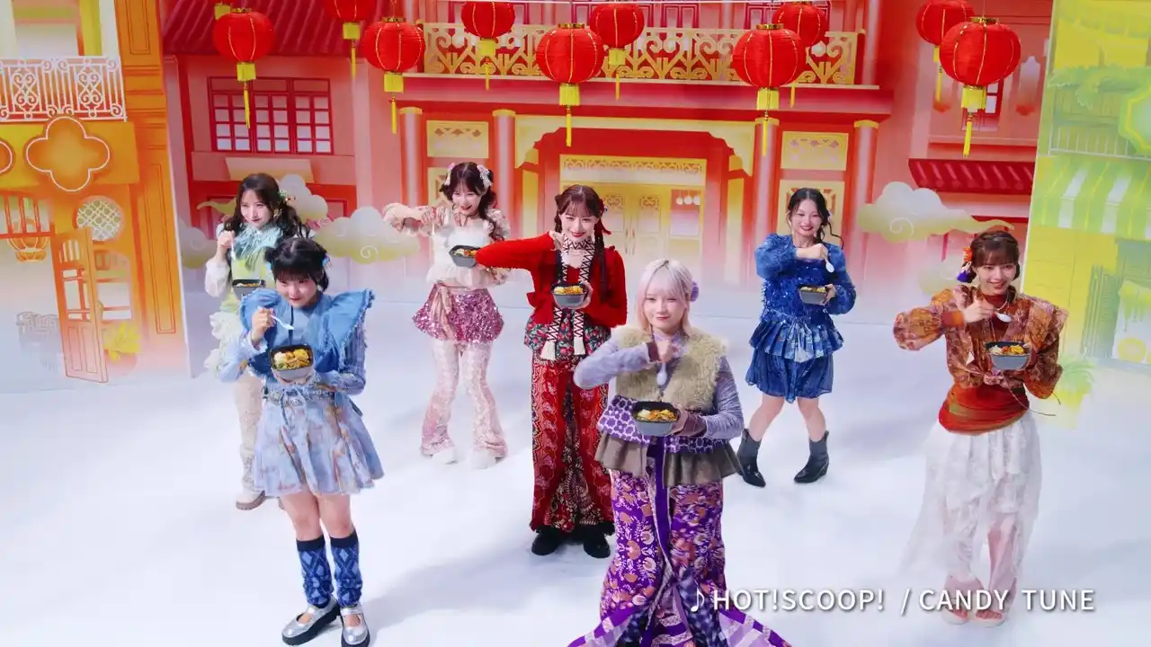 4月の新商品『焼肉ビビンバ』のCMは、アジアの活気あふれる世界観を舞台に、「CANDY TUNE」がメンバーカラーを配したアジアンテイストの衣装で登場。5種の具材と旨辛ダレを混ぜ合わせて楽しむ商品の美味しさを、キャッチーな“まぜまぜダンス”で表現しています。「アジアに夢中~ン!」という掛け声とともに、『焼肉ビビンバ』を頬張るメンバーの幸せそうな表情は必見です。また、CM楽曲には今回が初披露となる新曲「HOT!SCOOP!」を起用。『焼肉ビビンバ』の魅力を楽しんでいただけるCMとなっております。 |
