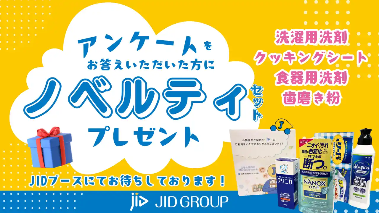 | JIDの出展ブースでは、オーナー様が安心して安全な賃貸経営を行うために必要不可欠な「JIDならではの賃貸保証」について詳しくご説明いたします。 | ||||||||||