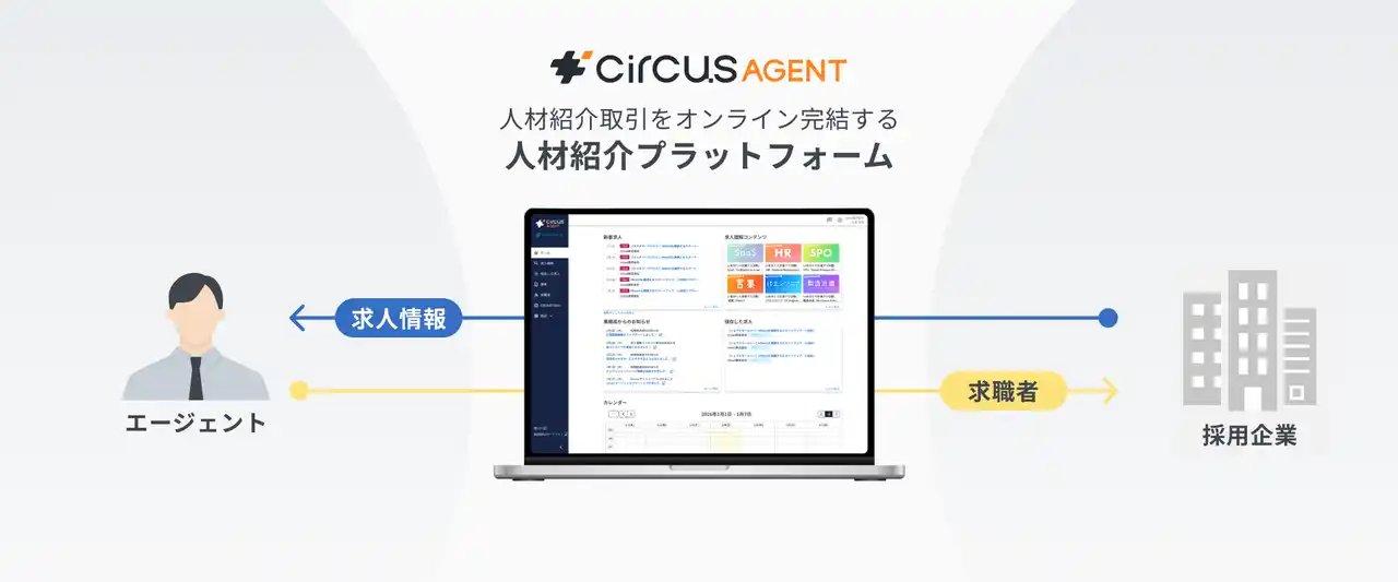 「circusAGENT」は、採用企業とエージェントの取引を効率化するBtoBプラットフォームです。 採用企業がプラットフォーム上に求人を掲載することで、登録しているエージェントに対して一括で紹介依頼が可能となります。 エージェントは、求人開拓工数をかけることなく、求人データベースを活用し、求職者の適性に合わせた最適な提案を行うことができます。 |