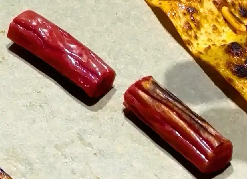 意外な変化を見せたのが「うまい棒」です。そのまま食べても美味しく駄菓子の定番ですが、炙ることで表面が香ばしくなり、風味がより鮮明になります。特におすすめなのはチーズをトッピングした状態での炙り。めんたいの旨味と、とろけたチーズのコクが溶け合う背徳感たっぷりの味わいです。 |