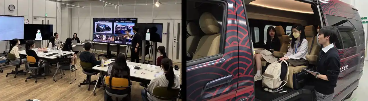 | 「Well Cabin」プロジェクト車両の空間を体験。参加者は単なる移動手段ではない、新しい移動体験やAIとの対話を通じて、当社の製品・技術に触れました。 | |||