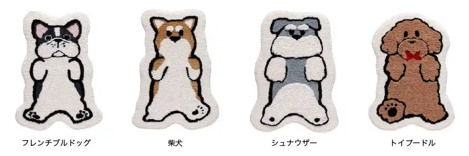 人気のフレンチブルドッグ、柴犬、シュナウザー、トイプードルの4種を展開。それぞれの犬種フォルムに合わせて立体的に見える工夫をしました。 |