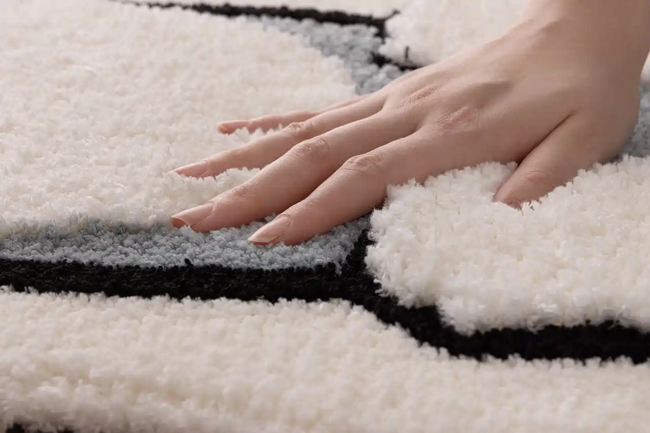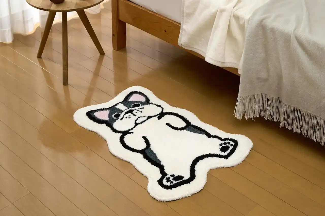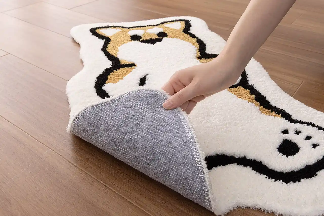 3. 暮らしに馴染む「機能性×サイズ」 リビングのソファ足元やベッドサイド、玄関に最適なサイズ設計にしました。裏面にはすべりにくい加工を施し、フローリングでも安全に使用ができます。インテリアとしてだけでなく、ワンちゃん自身の「お気に入りの場所」としても活用できる素材にしています。 |