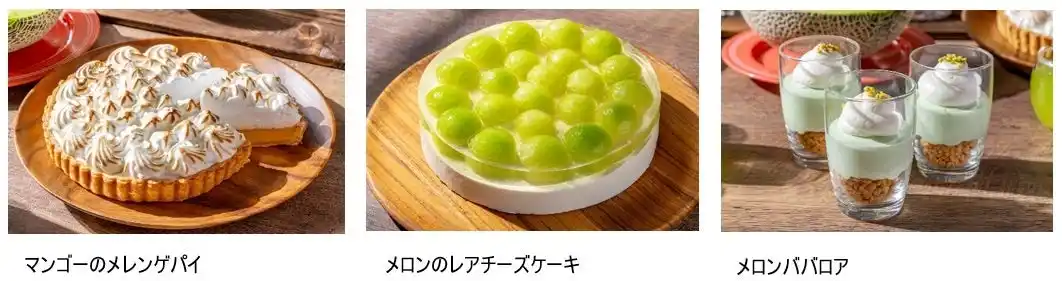 メロンのレアチーズケーキ、シャルロットメロン、メロンババロア、メロンとタピオカのスープ、メロンシフォンケーキ、メロンゼリー、メロンタルト、メロンとホワイトチョコレートのムース、プリン・ア・ラ・モード、マンゴータルト、マンゴーメレンゲパイ、マンゴーシフォンケーキ、バスク風マンゴーチーズケーキ、マンゴーショートケーキ、マンゴープリン、マンゴーとヨーグルトのムース、マンゴーショコラ、マンゴーシャーベット、メロンシャーベット など |