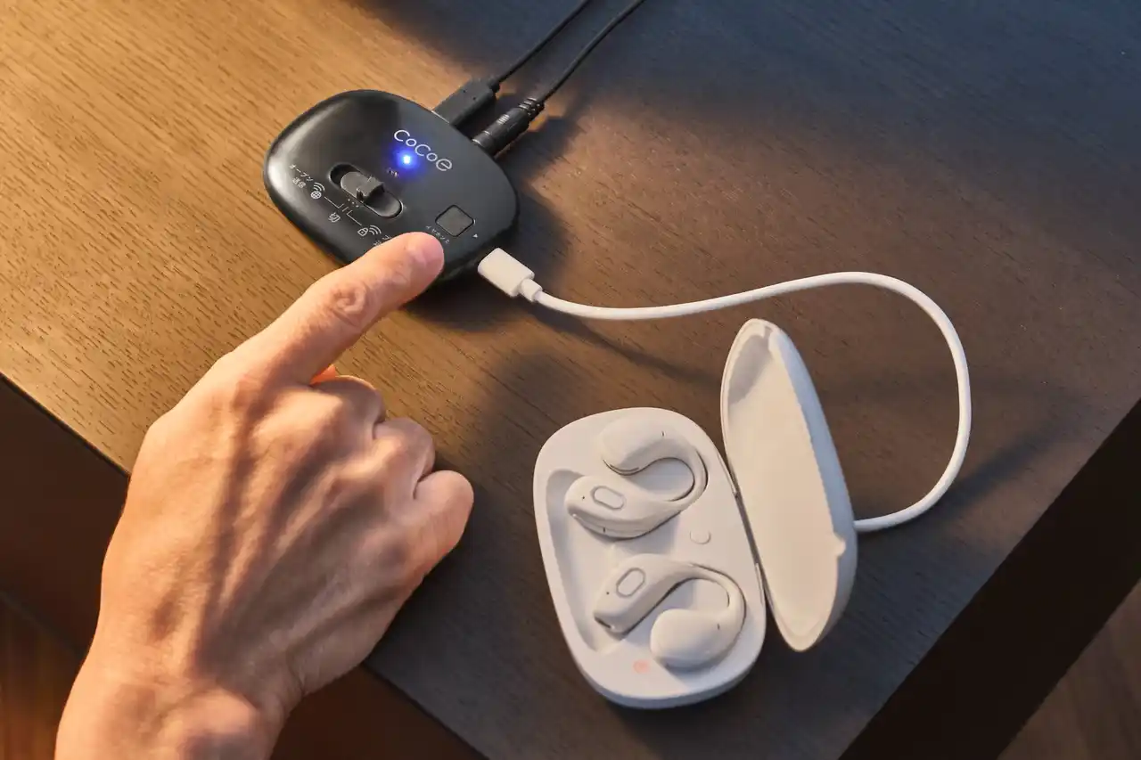 最新のAuracast(TM)に対応し、装着してボタンを押すだけでテレビ音声を無線受信。1台で複数の「cocoe Ear」に同時送信でき、接続もヘッドホン端子にケーブルを差すだけと簡単です。本体には集音マイクも搭載し、テレビの近くに置くだけでも使用可能。日常のテレビ時間を、より自然で心地よいものにします。 |