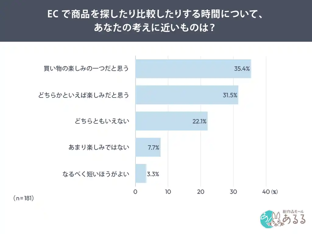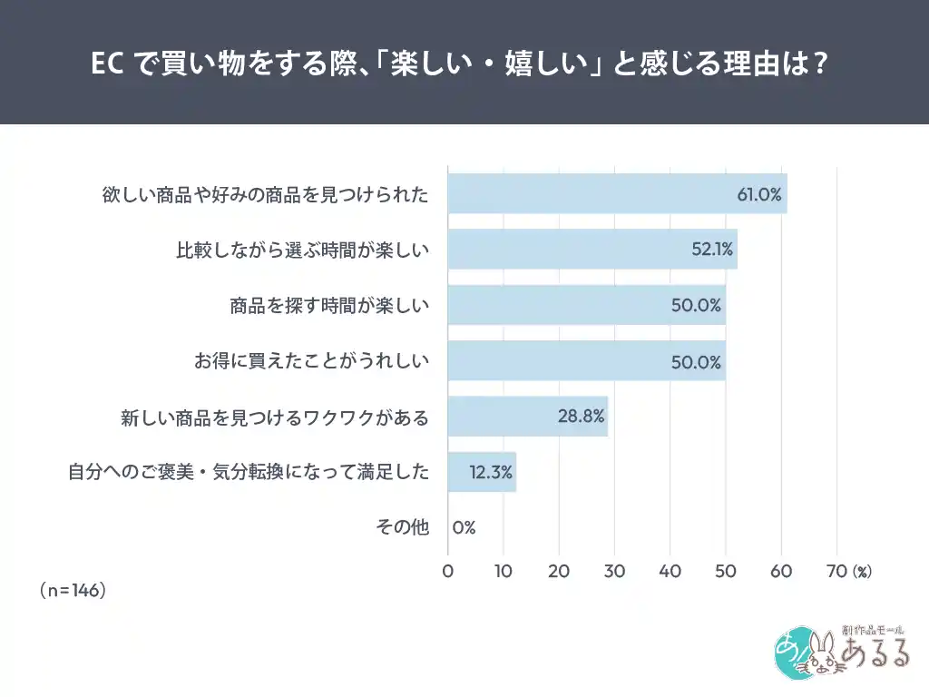 いずれも「探す・比べる・見つける」といった探索行動に集中しており、EC体験の魅力が購入前のプロセスに強く寄っていることが読み取れます。 |