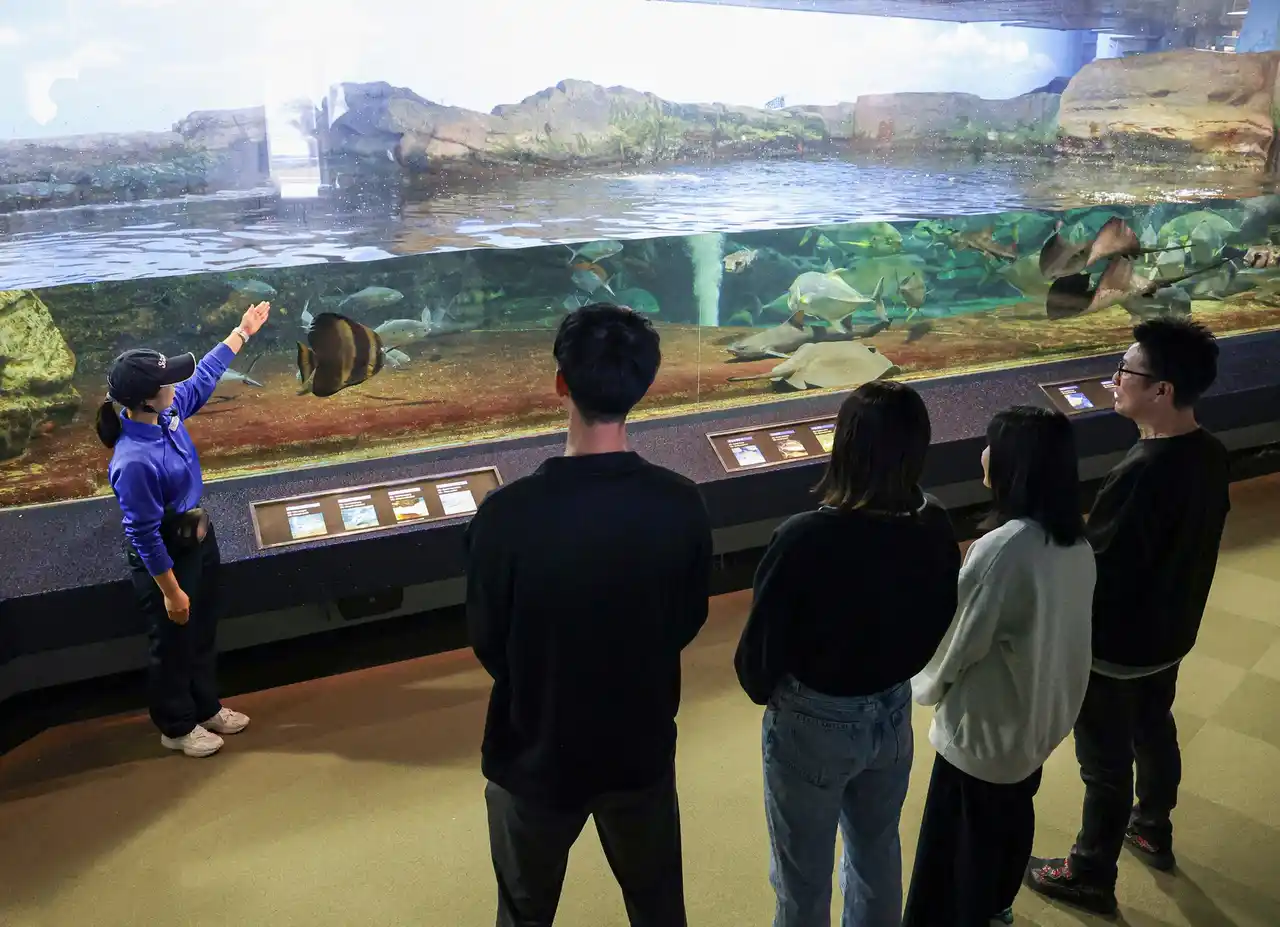 通常入館のみでは入ることのできないトロピカルアイランドのバックヤードスペースを巡るガイドツアーです。水族館の「水」や魚類の搬入について学ぶことができます。 |