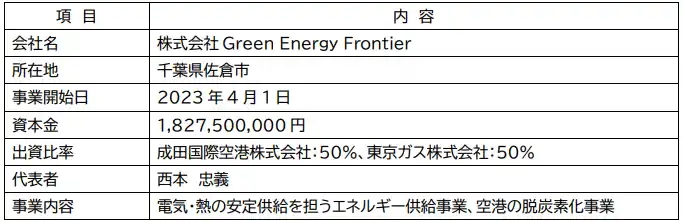 株式会社 Green Energy Frontier・成田国際空港株式会社・東京ガス株式会社 |