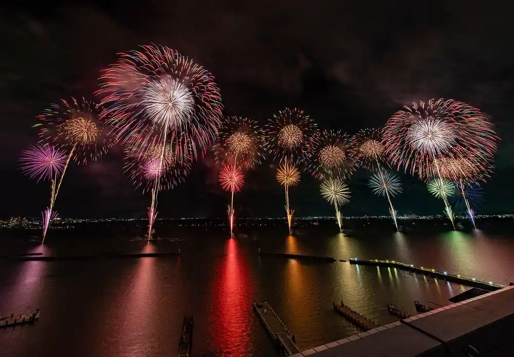 | プライベートな空間から、夜空と湖面に広がる大輪の華を眺める特別なひとときをお楽しみください。 | ||||||||||||||