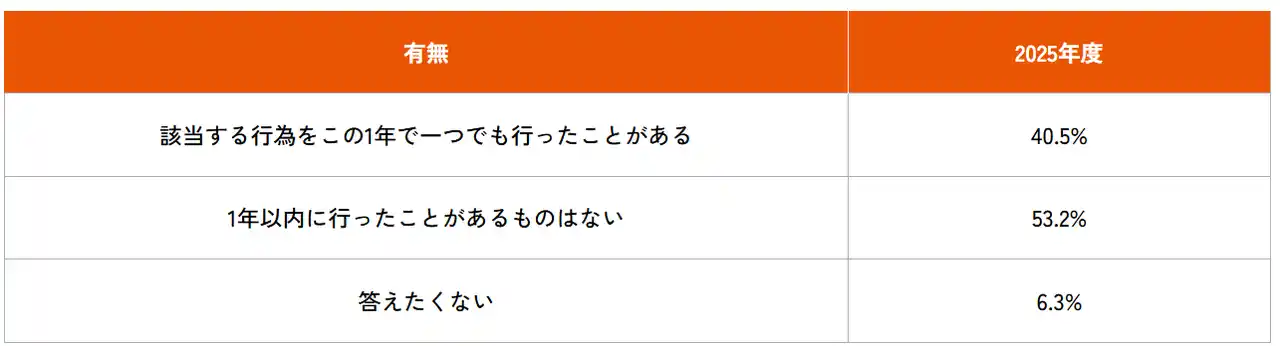 2.この1年間に「一つでも違反行為を行ったことがある」方は40.5% |