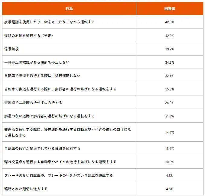 【表4-2】自転車の青切符制度の対象になると思う行為 |