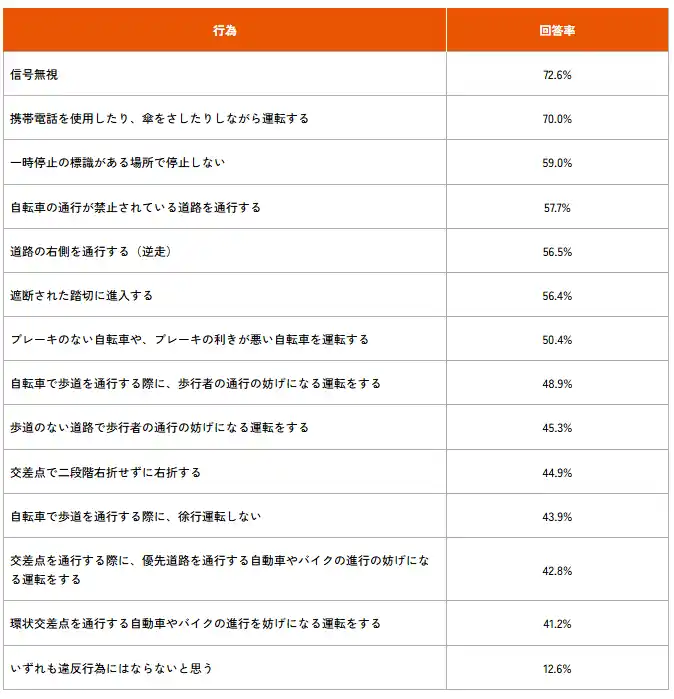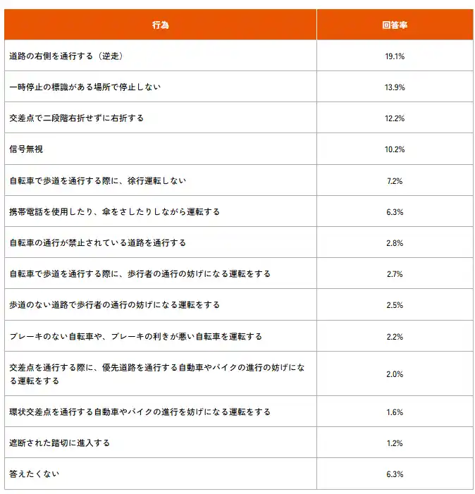 今回の調査では、自転車の青切符への関心は非常に高い一方で、対象となる行為の内容については十分に理解されていない実態が明らかになりました。 |