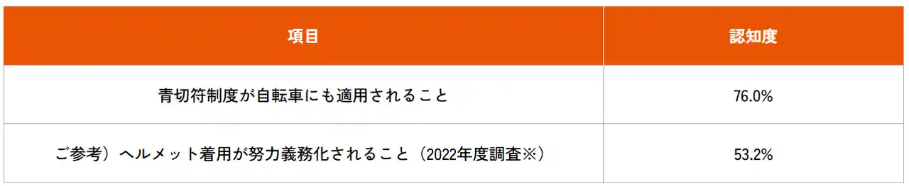 【表1】今年4月から「青切符制度」が自転車にも適用されること」の認知率 |