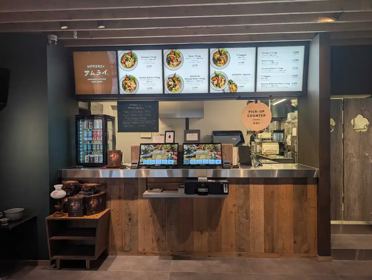 「ロジウラカリィ サムライ.」は"野菜を食べる"がコンセプトの北海道発の人気スープカレー専門店で、今回の導入は、飲食業界における深刻な人手不足への対応と、顧客満足度の向上を目的としています。また、鉄道利用者や駅ビル来館者の利便性を追求し、「JRE POINT」の付与および利用に対応しているセルフレジである「TTG-MONSTAR」を採用いただきました。これにより、お客様は使い慣れたポイントサービスを活用しながら、スムーズな会計をセルフで実現できます。 |