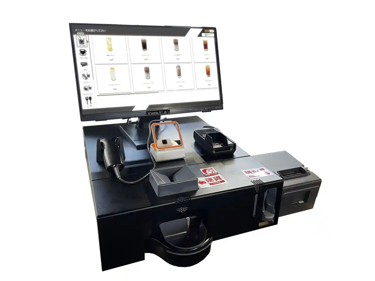 券売機、セルフレジ、セミセルフレジの1台3役をこなす多機能セルフレジ「TTG-MONSTAR」。レジ業務を担うことによりレジ人員を最大50%カット、自動レジ締め機能により閉店時の締め作業も不要。専用アプリによってどこでも売上管理、メニュー登録を可能にします。その他、時間ごとのメニュー切替や5か国語の多言語対応、セキュリティゲートとの連動、コールセンターサポート、レジの一部機能縮退による24時間営業の実現など、豊富な機能で様々な業態のお店に合わせてご利用いただけます。 |