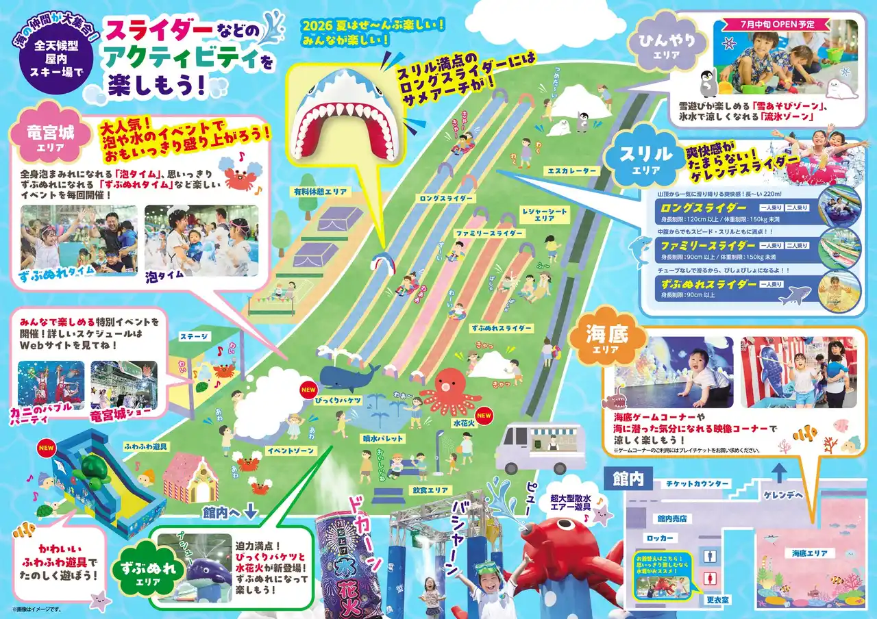 西武レクリエーション株式会社(本社:埼玉県所沢市、社長:依田龍也)が運営する狭山スキー場(埼玉県所沢市)では、2026年4月25日(土)~9月27日(日)までの間、「所沢に海!?海の仲間が大集合!」と題して『2026ウォーターフェス』を開催いたします。 |