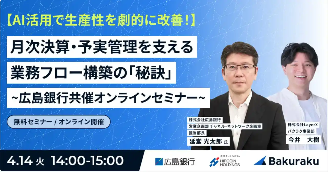 広島銀行共催オンラインセミナーを4月14日に開催 月次決算・予実管理を支える業務フロー構築の「秘訣」 |