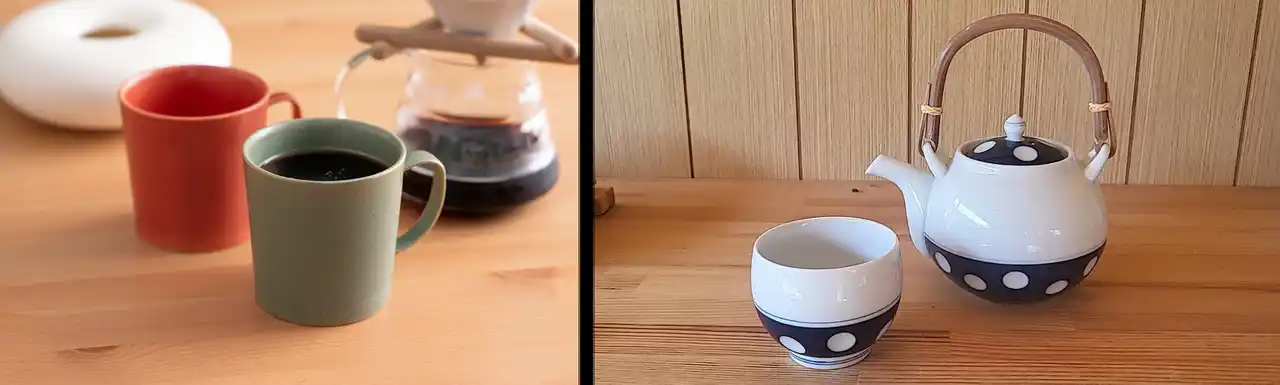 肥前吉田焼の里である佐賀県嬉野市は、美しい自然と豊かな資源に恵まれた土地です。「日本三大美肌の湯」として名高い「嬉野温泉」や、全国的に有名な「嬉野茶」の産地としても知られています。この地域の特性を生かし、茶器を製造する窯元も多く、昭和の食卓の象徴とも言える「水玉模様の急須や湯のみ」は、肥前吉田焼を代表する商品のひとつです。 |