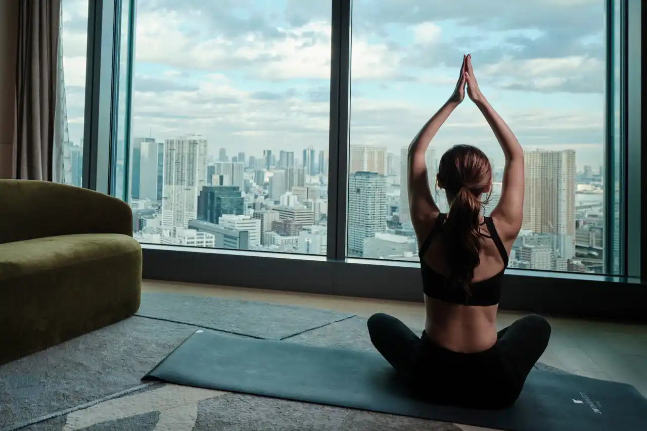 JWマリオット・ホテル東京のマインドフルルームは、スパやフィットネスセンターと同じ28階に位置し、休息や内省、ホリスティックなウェルネス体験を促すために設計されています。ゲストがご到着直後より日常の喧騒から離れてリラックスできるよう、チェックインおよびチェックアウトの手続きは通常の宿泊とは異なり、28階のスパラウンジにて行われ、ご到着前からのサポートや、コンシェルジュによる近隣施設の案内など、ホリスティックなウェルビーイングを求める旅行者のために、よりパーソナライズされたサービスをご提供しています。また客室には、ヨガマット、ピラティスリング、マッサージガン、メディテーションクッション、クリスタルボウル、アロマディフューザーといったアイテムが常備されています。 |