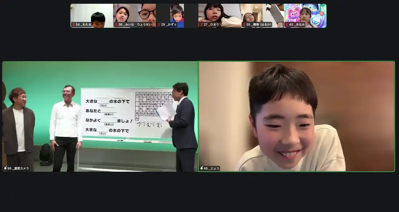 リアル・オンラインそれぞれの形で、お笑いのプロが創り出す世界を多角的に体感したこの一日は、子どもたちにとって「自ら表現し、笑顔を届けることの楽しさ」や「言葉の持つ力」に気づく貴重な体験となりました。 |