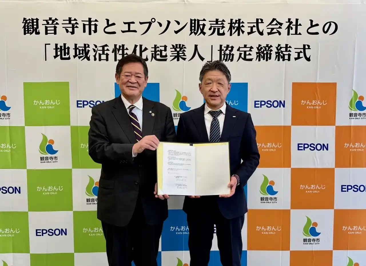 香川県観音寺市(市長:佐伯明浩、以下 観音寺市)と、エプソン販売株式会社(代表取締役社長:栗林治夫、本社:東京都新宿区、以下 エプソン販売)は、総務省が推進する「地域活性化起業人制度」に基づき、エプソン販売の社員を観音寺市へ派遣する協定を締結しました。 |