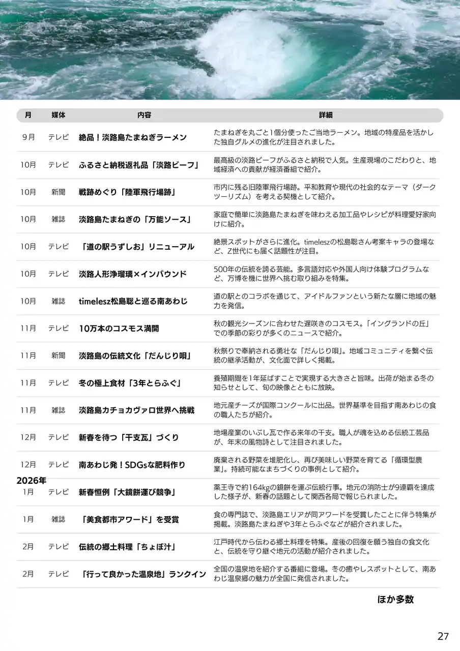 兵庫県南あわじ市は、市の最新トピックを網羅したメディア向けニュースリリース集「南あわじ旬だより 春号 2026」を発行しました。 |