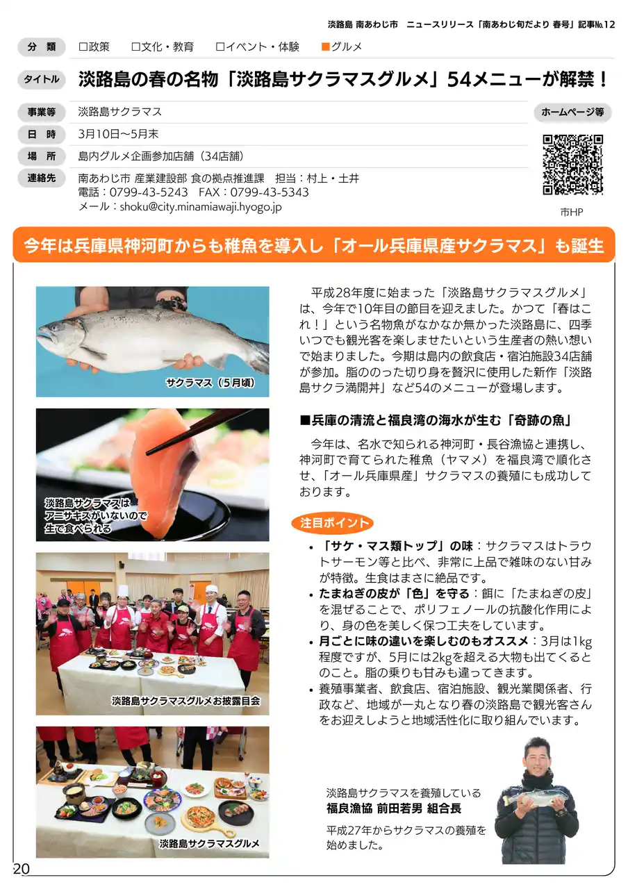 12. 淡路島の春の名物「淡路島サクラマスグルメ」54メニューが解禁!(P.20) |