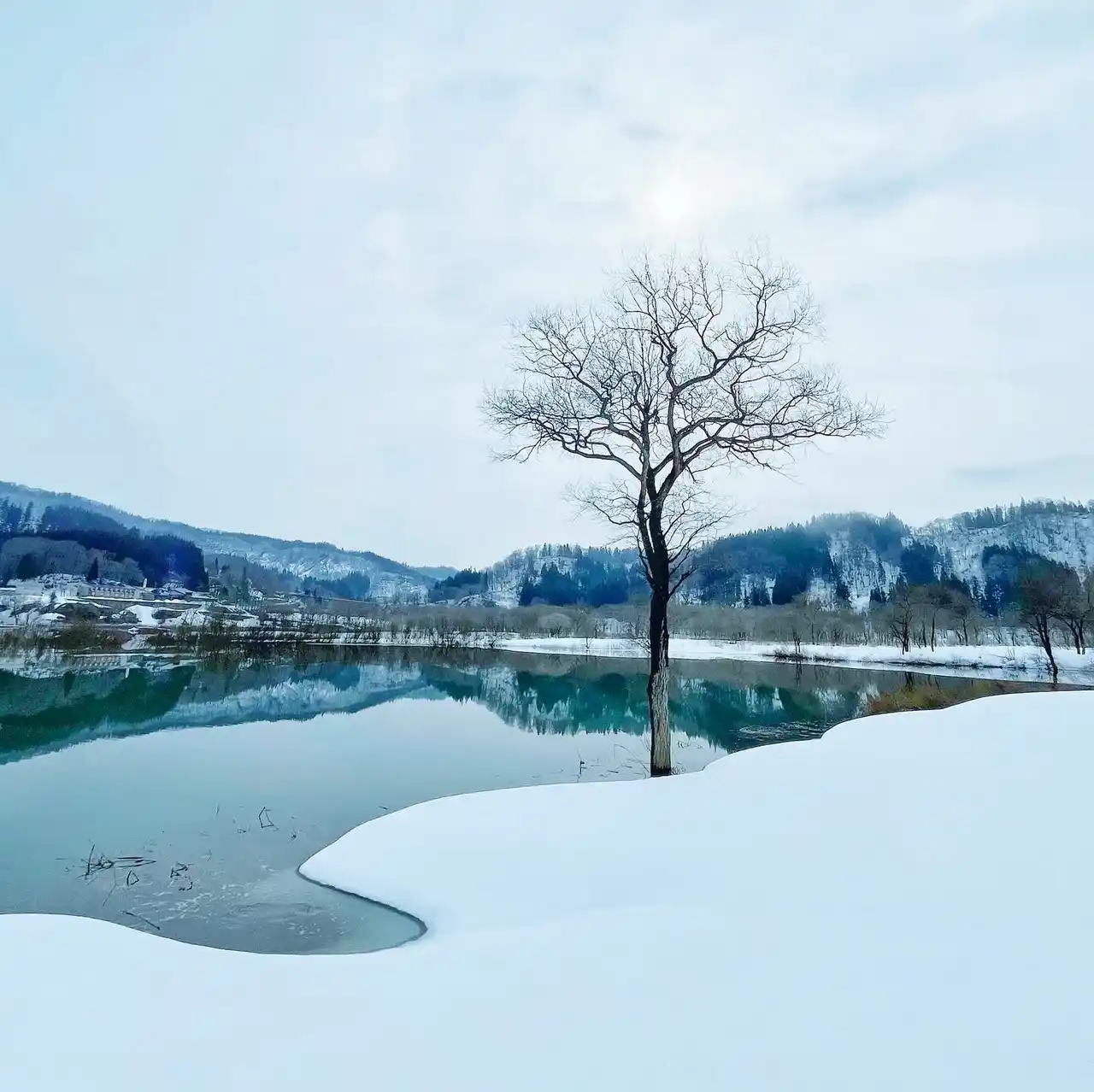 | さらに、3月下旬~4月中旬、木々が芽吹く前の水没林は、湖岸の残雪とともに白に包まれる静寂の世界に。この季節は「白の水没林」。水面に映る空の青さや、残雪の山のシルエットが美しく、新緑の季節とはひと味違う凛とした絶景が広がります。 | ||||||||||||||