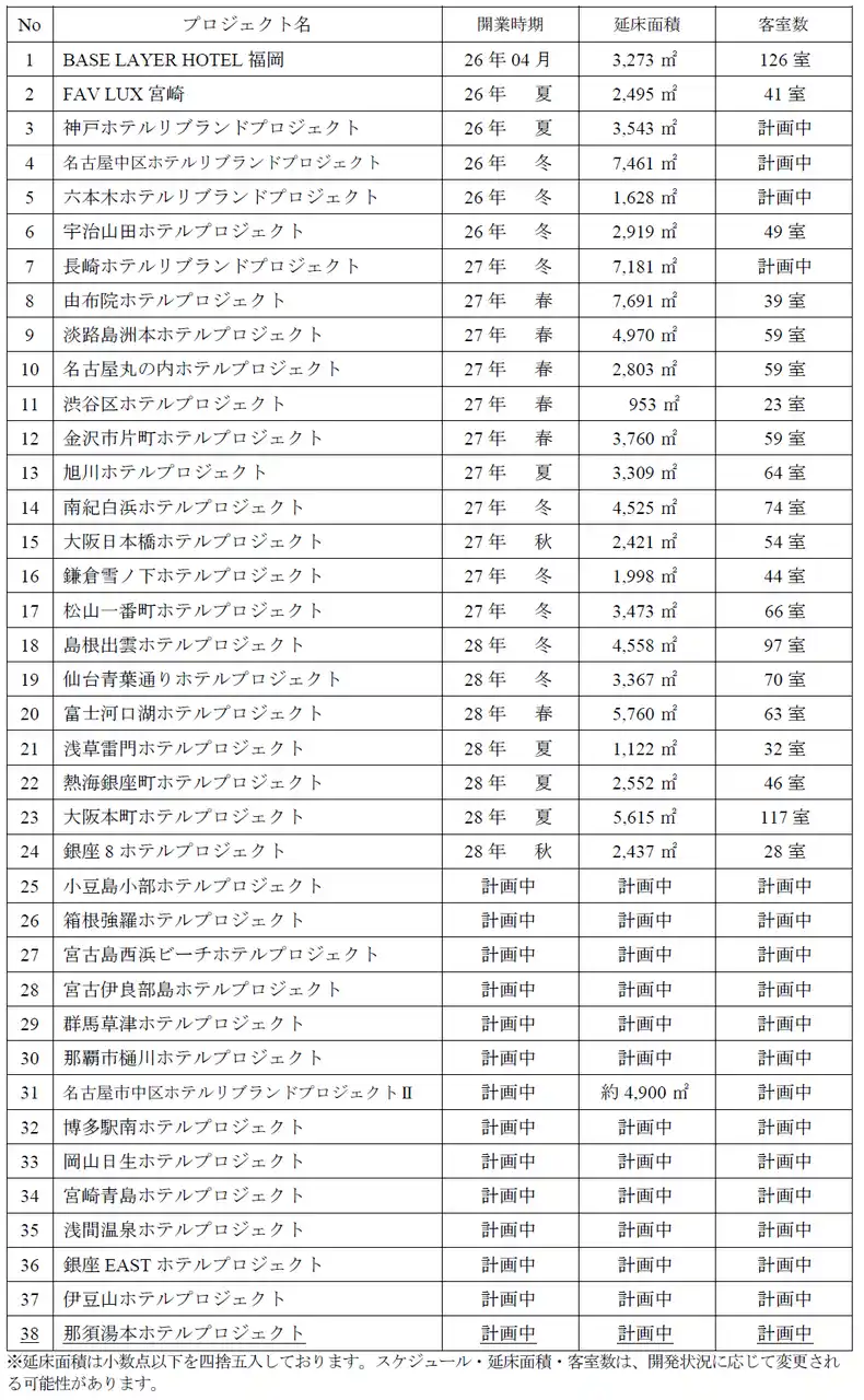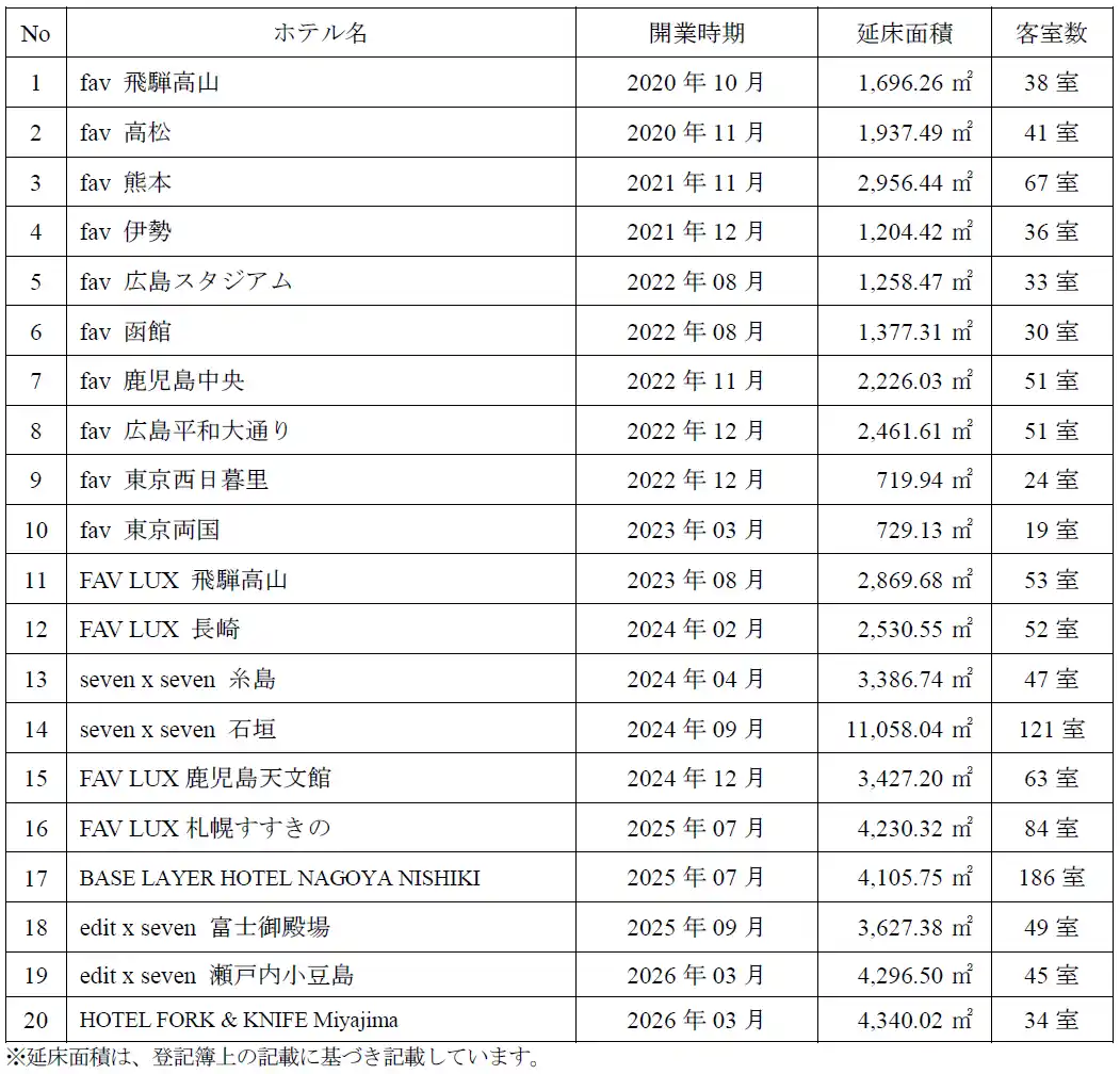 | 当社は、観光立国の実現や地域創生への貢献を目的にホテルの開発に取り組んでおり、多人数向けホテル『fav』『FAV LUX』『edit x seven』『seven x seven』、およびカルチャービジネスホテル『BASE LAYER HOTEL』をはじめとしたホテルブランドを全国で展開しております。このたび、当社グループの多人数向けホテルブランドの開発用地を新たに販売用不動産として取得いたしました。 | |||