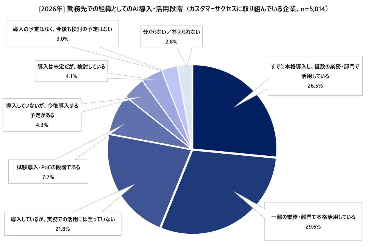 (図1:[2026年] 勤務先での組織としてのAI導入・活用段階(カスタマーサクセスに取り組んでいる企業)、n=5,014) |