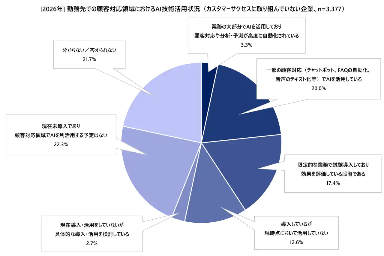 (図4:[2026年] 勤務先での顧客対応領域におけるAI技術活用状況(カスタマーサクセスに取り組んでいない企業)、n=3,377) |