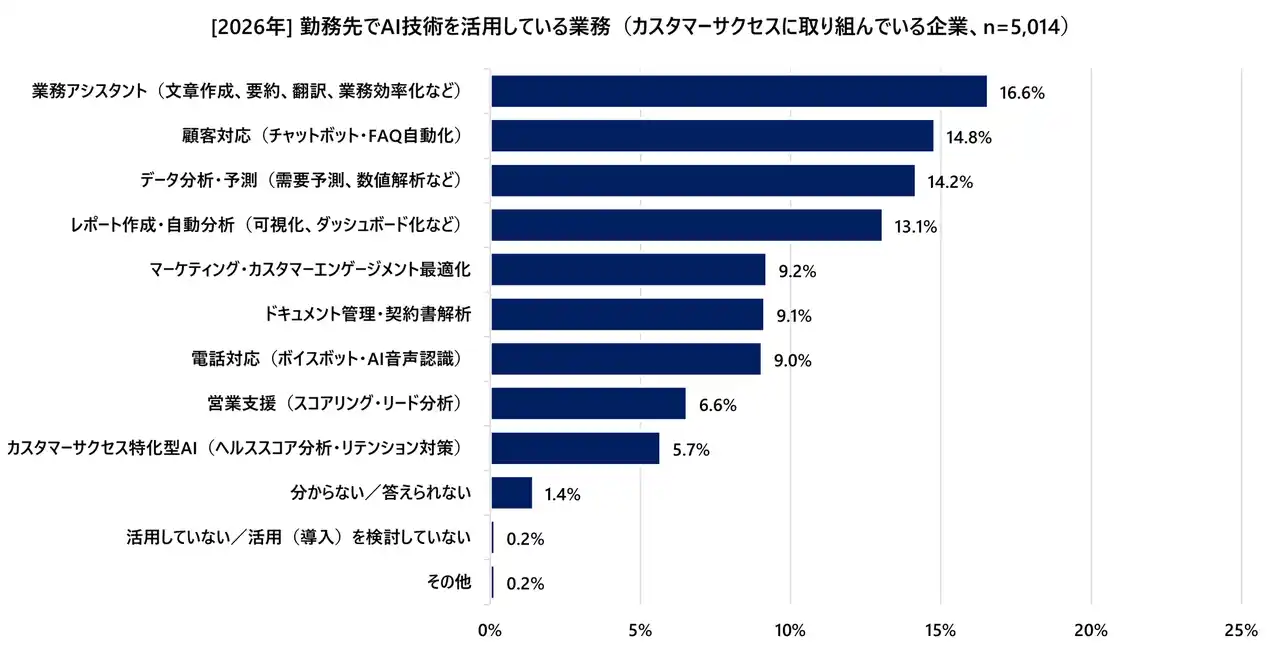 (図5:[2026年] 勤務先でAI技術を活用している業務(カスタマーサクセスに取り組んでいる企業、n=5,014) |