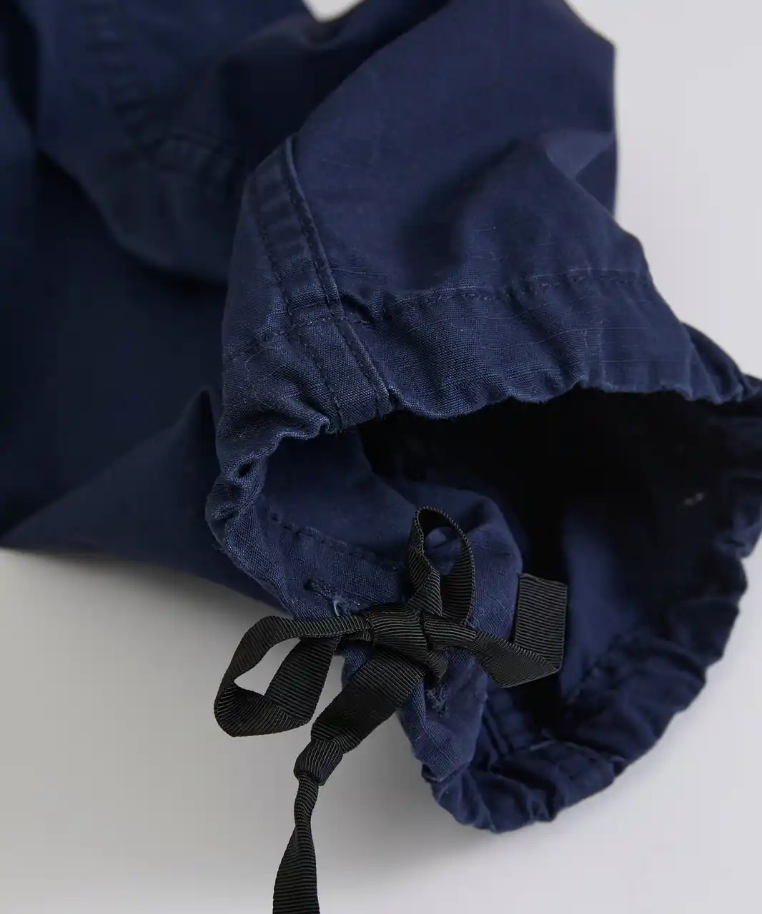 現在はダブルステッチが主流のため、このような縫製はほぼ存在しないが、ヴィンテージ好きにはたまらないマニアックなディテール。機能性は異なるが、デニムでいうセルビッチ(耳)的な存在に近いディテールとも言われています。 |