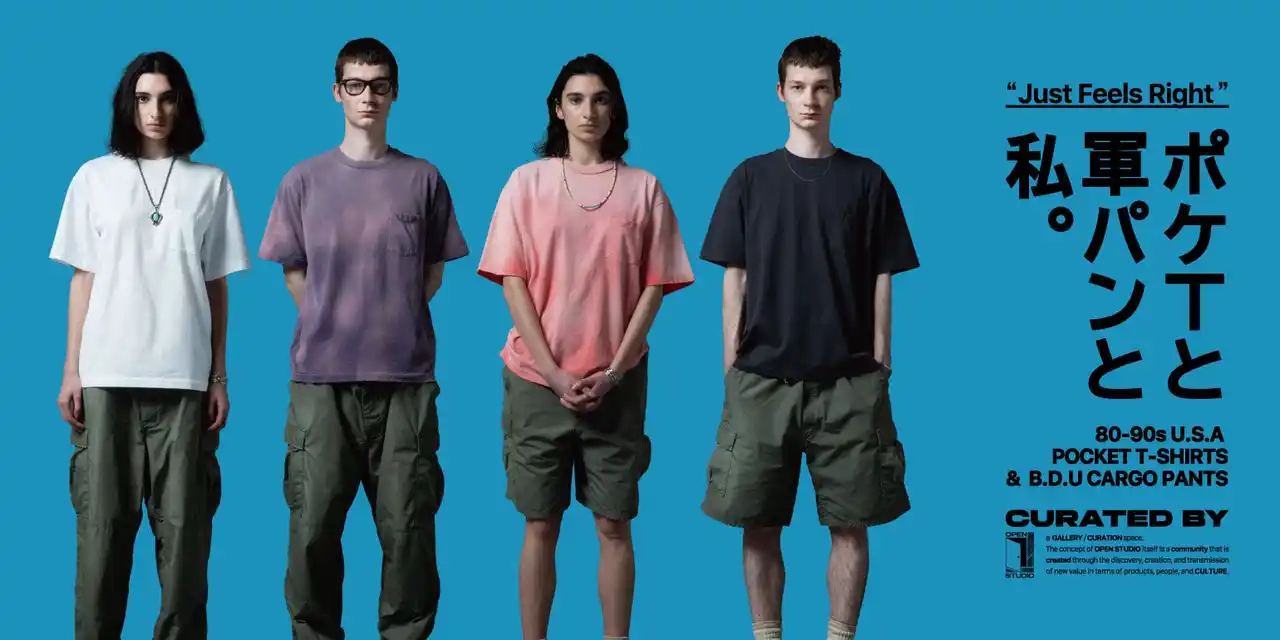 渋谷店に併設したギャラリー兼ポップアップスペース「OPEN STUDIO(オープンスタジオ)」にて4月3日(金) ~ 4月19日(日)の期間限定でポップアップイベント「ポケTと軍パンと私。」を90年代を代表するオルタナティブ・ロックと写真、アートの関係性を紐解きながら楽しめるTシャツとグッズのキュレーションイベントと同時開催します。 |