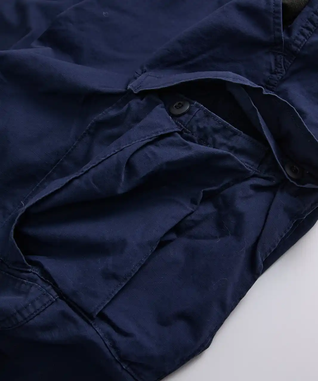 こちらはプロッパーの代表的な製品BDUカーゴパンツです。BDUとはBattle Dress Uniformの略で米軍の伝統的なカーゴパンツを忠実に再現しており、高い収納力と摩耗しやすい膝と尻が二重に補強されており、非常にタフな作りです。生地は今では珍しいコットン100%のリップストップ。破れが方眼目で留まる様になっているので破れに強い構造になっています。ウエストサイドのアジャスターでサイズ調整が可能。裾にはドローコードがあり、シルエットの変化を楽しめます。 |