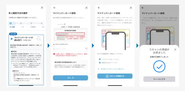 ▼口座開設時のマイナンバーカードの読み取り手順 (OSにより異なります) |