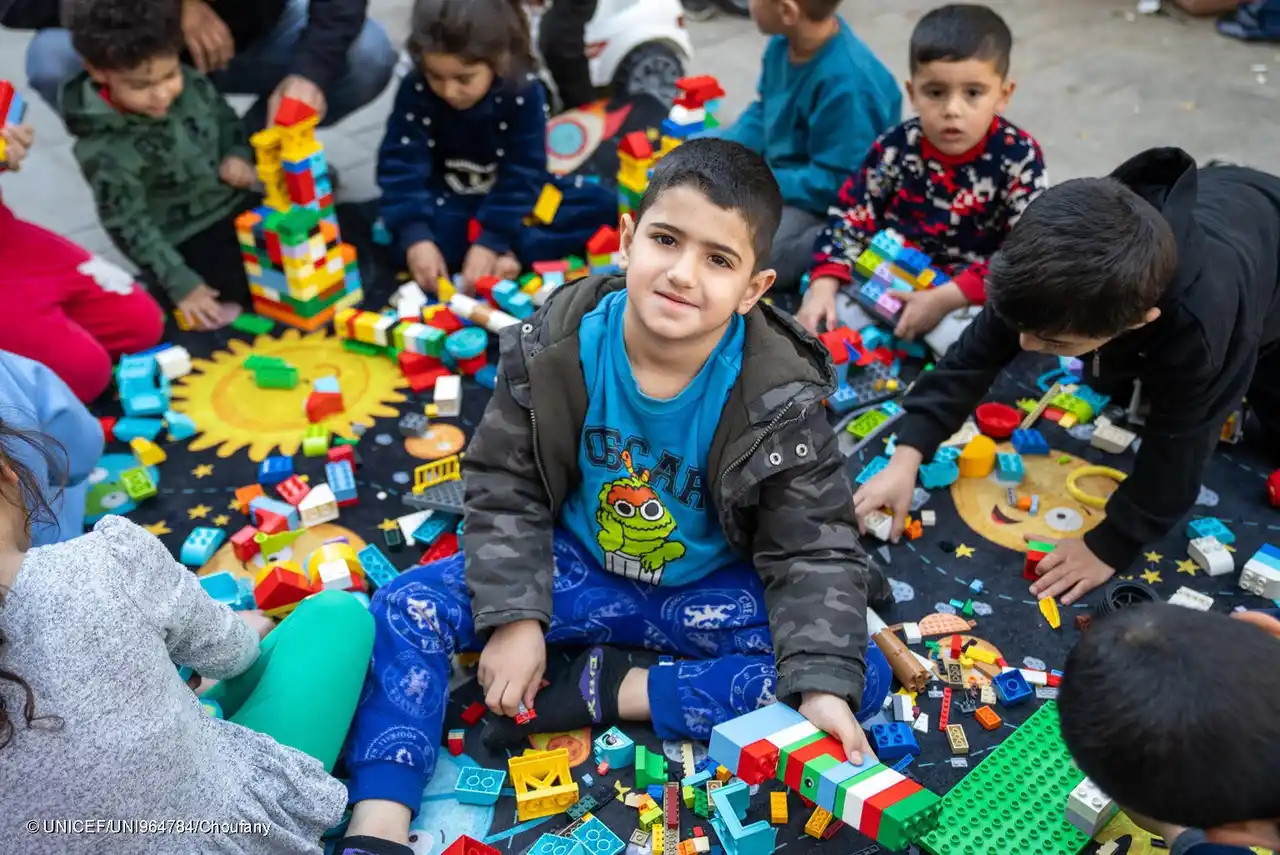 ベイルートの避難所となっている学校で、ユニセフが提供したおもちゃで遊ぶ10歳のアミールさん(レバノン、2026年3月17日撮影) (C) UNICEF/UNI964784/Choufany |