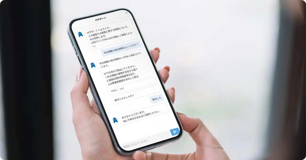 「AI質問・相談チャット」を皮切りに、現場のお悩みの声から開発したAI機能をリリース予定であり、今後も人事・労務の皆様が、より重要度の高い業務に集中できる環境をつくれるよう支援してまいります。 |